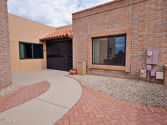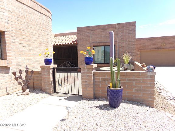 With a desirable North / South exposure this 1,625 sq. ft. Townhome offers great views of the Rincon Mountains from the rear screened patio and back yard to the spectacular Santa Rita Mountain views from the front courtyard. The home features a combination of rich wood flooring in the foyer, kitchen and hallways and ceramic tile flooring in the living room, baths and bedrooms. The beehive fireplace in the living room adds warmth to the home. Kitchen w/granite tops & bath w/quartz tops, under mount sinks, and updated master bath shower are some of the highlights offered. The master bedroom has a 6 by 12 ft. alcove section available for office, reading, or just relaxing. Two storage closets on back patio and oversized garage w utility sink offer great storage. Agent related to seller.