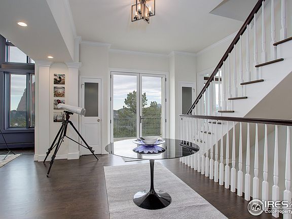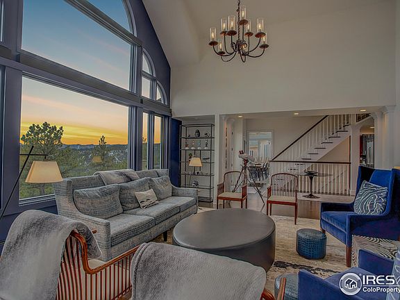 Behind the gates of exclusive Carriage Hills Estates, perched atop a rocky prominence lies this stunning horse property with endless views. Upon arrival, you will marvel the awe inspiring scale of the secluded setting & vista from the front porch. Soaring ceilings greet your arrival to a luxurious living room with grand scale windows. Wall switches reveal the jaw dropping views from behind electronic blackout shades and are installed throughout the home. Kitchen is outfitted with premium grade appliances, cozy gas fireplace, eye-catching quartz countertops, and a sunny, picturesque dining area. Main level primary bedroom features a private patio, a luxe 5 piece bath complete with soaking tub, towel warmer, & radiant heat. An impressive theater room is the highlight of the main level w/included furniture. Lower level is an entertainer's paradise complete with bar, walk-out patio, cigar room, & family room. Enviable views from the spacious & bright guest quarters. Gym & bonus room that would make the perfect home office has private access directly to the garage. Upstairs are 2 additional bedrooms w/vaulted ceilings & walk in closets & a rec room that welcomes festivities. 3 stall barn and 34 acres ideal for equestrians. Extensive fire mitigation work completed has transformed this property into beautiful park-like grounds. This tranquil home is the perfect marriage of utmost luxury & natural beauty surrounded by complete serenity.