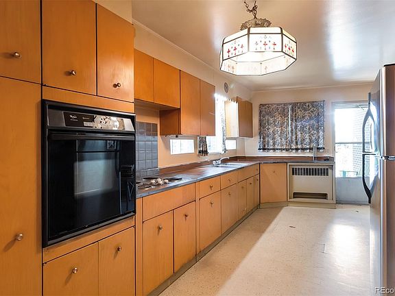 Original home owner's Mid-Century Modern custom built home with ALL the original finishes-UNTOUCHED! Located on the bend of a seldom traversed hillside street, overlooking warehouses to an unobstructed panoramic mountain view. Sit on the patio and enjoy watching a Bronco orange and blue sunset over the mountains. Custom kitchen with ample sleek birch wood cabinets-original and in excellent condition. Original light fixtures, louvered dividing walls, arches and built-in cabinetry throughout. Bathrooms are unique and original, and need work. Yes, this is a fixer-upper-plaster walls have some cracks that owner said had been there unchanged for years. The right buyer will be thrilled and rewarded by making this Mid Century Modern home their own. A rare find with Mid-Century Modern architecture, original features, and a unique eclectic urban-mountain view location.