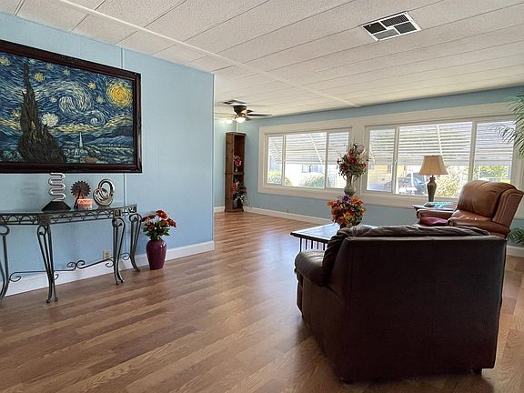 Price Improvement! This home in the highly sought after 55+ community, Eden Gardens Estates features 3 bedrooms, 2 bathrooms 1536 sq ft of updated living room with new laminated flooring. Off the dining room you will find the laundry room with a full size washer and dryer. On the side of the property there is a permitted sun room attached to the home, perfect for guests and a cup of morning coffee. Well appointed covered tandem parking and 2 storage sheds on the sides. Located in a small park made up of 129 units with an onsite manager. Welcome Home!
