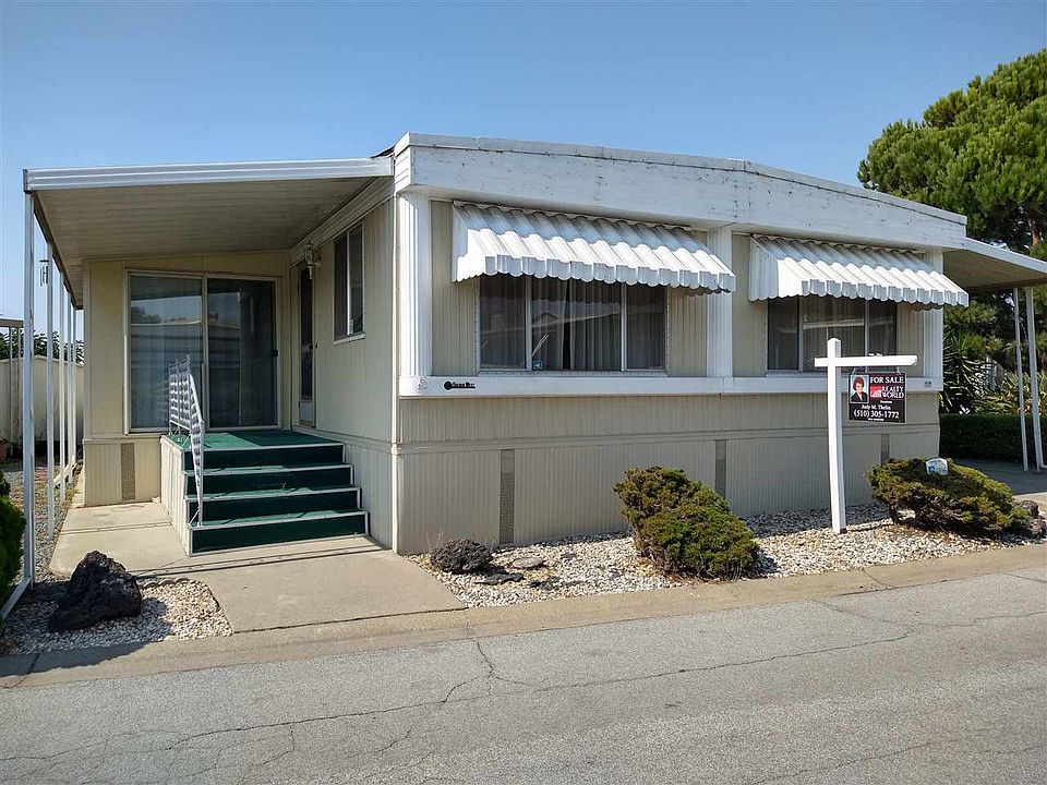Wow!! This is a BUY!! Spacious..Bright.. in a Senior Park near San Mateo and Dumbarten Bridges across the bay!! Plus..Walk to Walgreens, The Sizzler Restaurant, Southland Shopping Center and the Bus to Bart!!, 3 Bedrooms..2 Baths..Laminate Flooring, Big kitchen, indoor laundry, and a 2 car covered parking space at the unit. Close to the Clubhouse. Independent Living at it's best in this small 129 unit park. One person on title must be 55+..Other occupants 18+. Units MUST be owner occupied! Park is under Hayward Rent Control!