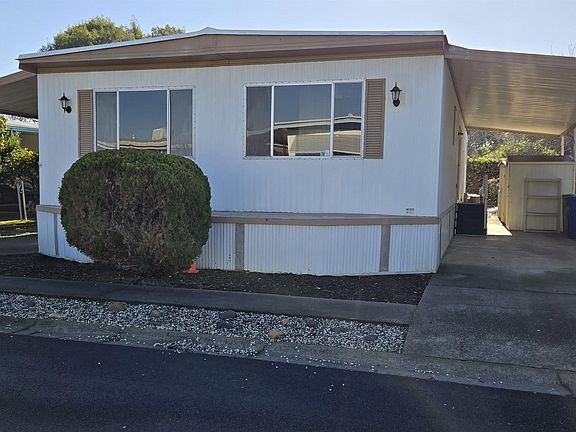 This must have been the Cadillac of mobilehomes in its day! It has a central vacuum! Buyer to investigate. 2 bedrooms, 2 baths, living room and separate family room, dining room with hutch, inside laundry and screened-in porch. Light paneling. Can use some tlc, but sellers recently had the roof sealed, the water heater overhauled and improved the look of the kitchen cabinets. A new kitchen countertop was also installed. New window sills and wood surround on two windows in the larger bedroom. If you saw it before, it is worth another look. Two sheds. Mature fruit trees. Near the back gate. Very close to a park, shopping mall, 880 and San Mateo Bridge. Senior park. At least one person must be 55 years of age or older and all other parties 18 and older.