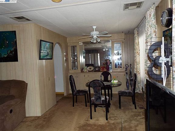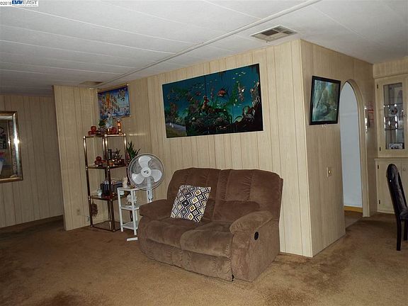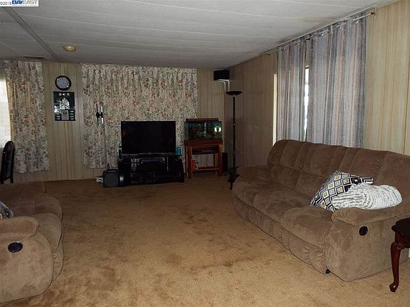 Independent living at its best in this Senior Mobil home community located Near San Mateo Bridge, Freeway access , shopping center, many restaurants, and public Transportation. Light paneling, plush carpeting, F/A heating and Air conditioning plus many fruit trees. Mrs. Clean Lives here! Close to clubhouse, Pool, Saunas, and Spa. 2 bedroom, 2 bath . 1440 Sq. Feet of living space . Covered parking for 2 cars, plus storage shed. Indoor Laundry with Washer and Dryer. & Copper Plumbing. Security gate at the rear entrance to the park.