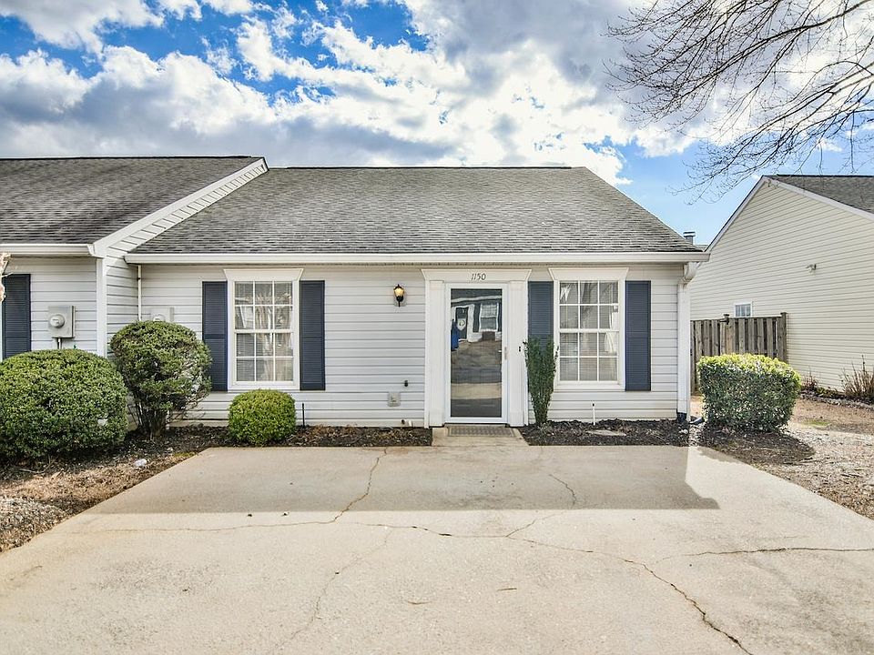 Welcome to 1150 Webber Way, an amazing opportunity to own a one-level 2 Bedroom, 2 Bathroom townhome on the Eastside of Spartanburg! Home has been fully repainted, and carpets professionally cleaned. The galley kitchen has plenty of cabinetry and white kitchen appliances, all to remain. The Living Room and Dining area are open to one another, spacious and have tons of natural light. The Living Room has a fireplace with a tiled surround and mantle above. The Master Bedroom is a nice size with a large walk-in closet and en-suite. Washer/Dryer hookups are in the Master Closet, ideal for easy access to laundry. The additional bedroom is a good size with a closet and access to the additional full bathroom. The attic space is huge, perfect for extra storage. The back yard area is fully fenced, it also features a patio and small storage closet. HVAC Unit and microwave were replaced in 2023. Roof replaced by the HOA in 2010. Conveniently located near all the amazing amenities that the Eastside of Spartanburg has to offer! What are you waiting for? Schedule a showing today to see this home!