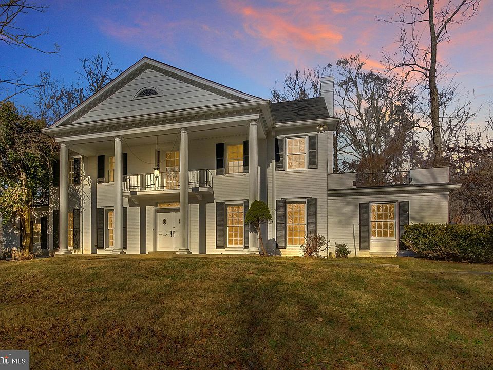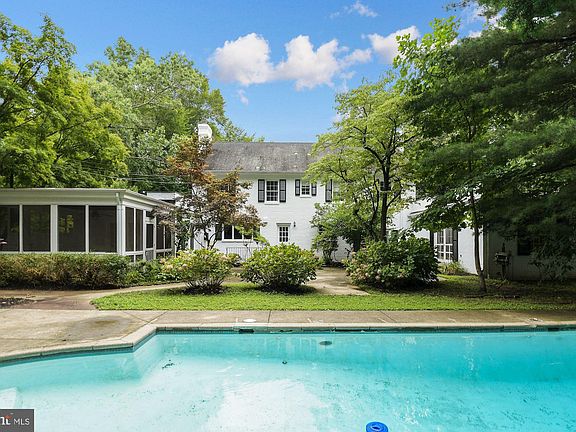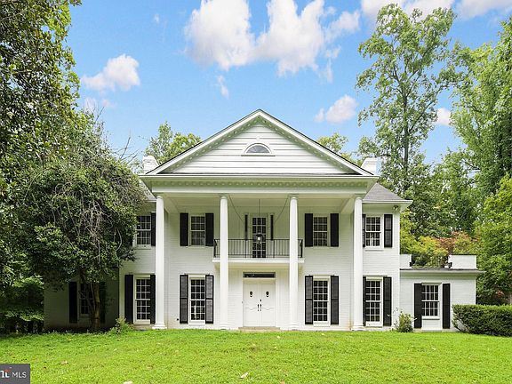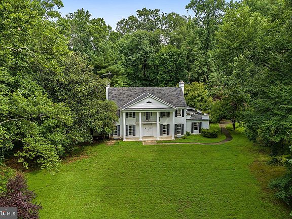 This unique, expansive estate provides a tranquil oasis from the hustle and bustle of DC. This nestled-in-the-woods property provides you the ideal location for working and learning remotely. Double doors open to a soaring two-story marble floored entrance framed with a curved staircase, custom millwork, and vintage chandelier. The main level features a formal dining room, updated kitchen, family room, library-study, screened porch, formal sitting room, home office, wet-bar, and main floor bedroom with ensuite bath and private entrance to the patio. Numerous french doors open to the patio offering unique indoor-outdoor access for entertaining and poolside leisure. Upstairs, you'll find four bedrooms, including Master bedroom with a walk-in closet and an enormous en suite bath with a jacuzzi tub, shower and double vanity. Additionally, three more bedrooms with two more full baths round out the upper level. The basement level has been partially finished and includes ample storage, lots of closet space with shelving, and a full bath - perfect for an Au Pair, guests, Zoom Room or an additional home office. This lovely home is situated majestically on a hill in this private community. You'll have over five acres to roam and explore the surrounding woods and the bubbling creek meandering through the neighborhood. Nature lovers and kids of all ages will delight in what this property has to offer. A true Georgian Grande Dame!