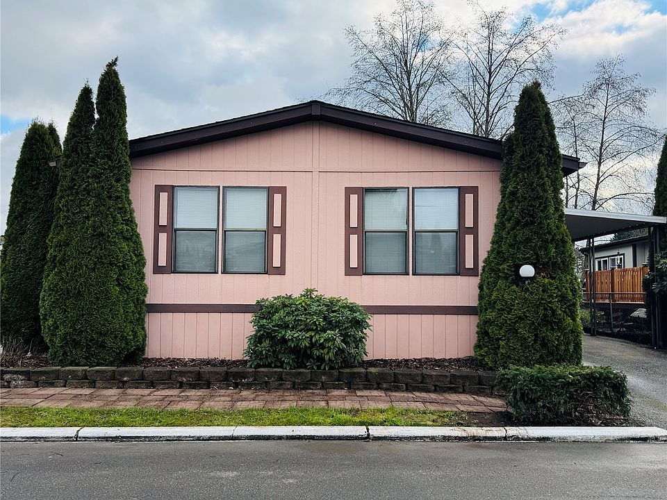 Welcome to this very roomy, double wide manufactured home built in 1987; located in a very convenient location. Large Primary suite offers a walk-in closet and spacious bathroom that includes a double vanity, soaking tub and separate shower. There is a generous sized den, two secondary bedrooms, which feature ample storage and three bathrooms total. Two exterior decks both at main entry and rear entry off dining area. There is ample storage throughout interior, and an exterior storage shed near a nicely covered carport. Utility room has a washer and dryer, laundry sink and storage. Spacious kitchen and many skylights add brightness to this lovely home. Heat pump for warm winters and cool summers. Move in ready.