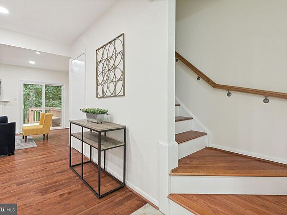 Picture perfect! You will fall in love with this beautiful end unit townhome. The main level features a spacious sun-filled living room with wood floors and a wood burning fireplace, a separate dining room with wood floors, and an updated eat-in kitchen with granite counters. There is access to the expansive rear deck from a sliding glass door in the living room. You will cherish the serenity and tranquility of this outdoor space and delight in the gorgeous views of the woods behind the home. Also on the main level is a half bath. On the second level you will find the primary bedroom with an updated ensuite bath, two additional bedrooms and a full bath. The finished lower is perfect for a family room or home office. Ideally located, close to parks, trails, shopping, restaurants, and 270.