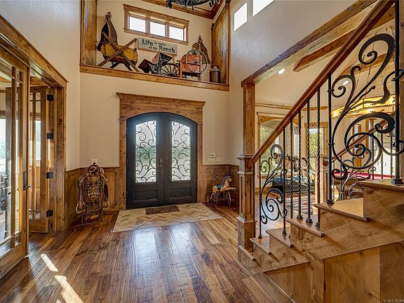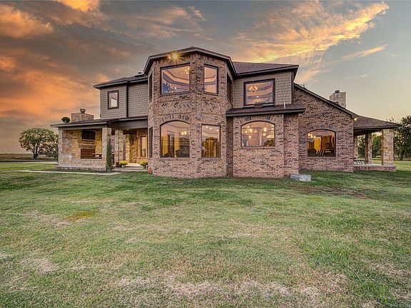 Welcome to country living at it's absolute finest, This 4 bedroom, 3 full and 3 half bath home features a grand foyer with a masterfully built staircase, 2 offices, 5 fireplaces, a chefs kitchen with Thermador appliances, 3 living spaces, a formal dining room, a master retreat with a sitting area and expansive bathroom. There is a 40 x 80 air condition shop with a 3 bedroom fully outfitted bunk house all set on a 30 acre tract surrounded by 6000 acres of the most beautiful land in Okmulgee county.