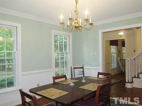 Wonderful 4 bedroom 2.5 bath traditional home in prime N Raleigh location. Heart pine floor throughout most of first floor. Spacious formal living & dining rooms. Family rm features masonry fp. Bright & open eat-in kitchen w/ desk area. Sunny breakfast area. Large master suite w/ 2 closets. Fantastic, vaulted screen porch w/ skylights. UNF walk up attic offers lots of options. Great b-yard w/ wooded buffer. Popular Coachman's Trail has community pool, tennis, clubhouse & playgrounds. Convenient to I-540.