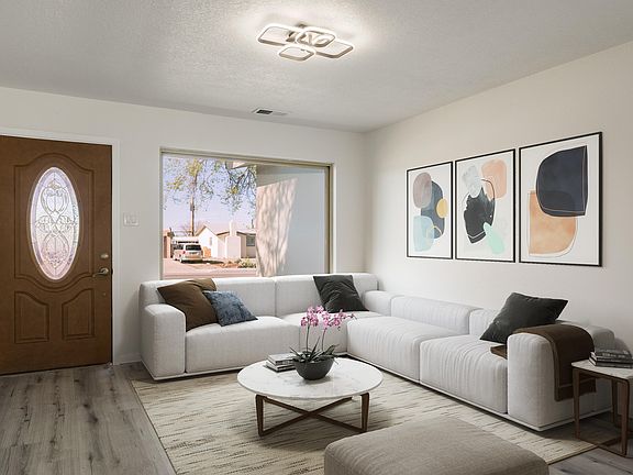 Multiple offers received. Single Story, detached 3 BR 1.75 BA 1 car garage on Constitution just West of Juan Tabo. Updated, Refrigerate Air, New Kitchen and the kitchen appliances are included. Soft Close drawers, quartz counters. Easy to maintain floors, updated bathrooms, Walled back yard! NO HOA, bring your pets and your furniture because this is Move In Ready. Seller can accommodate a quick closing if needed.