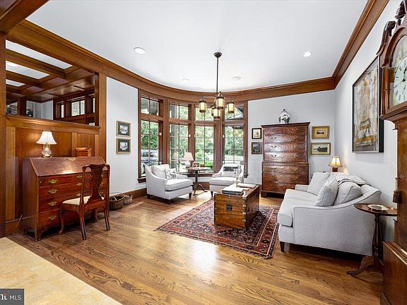 This European craftsman-style luxury home in Merry-Go-Round Farm offers exceptional quality and attention to detail. Designed by architect Jim Rill, every architectural detail was carefully crafted for this 6900+ square foot house. The combination of French farmhouse and American influences creates a unique and elegant ambiance. The stone exterior, slate roof, copper gutters, and rustic stonework blend harmoniously with the wooded surroundings and panoramic views of the Potomac River. Inside, the emphasis on clean lines, simple ornamentation, and the extensive use of quarter-sawn oak trim and paneling add warmth and beauty throughout the home. From the dining room with its heated limestone flooring and honed marble fireplace to the living room each room exudes exceptional craftsmanship. The family room features a stunning stone fireplace, wood beamed ceiling, and French doors opening to a balcony overlooking the Potomac. The craftsman-inspired Jennifer Gilmore kitchen is a masterpiece with exquisite wood quarter-sawn oak paneling and cabinetry, granite countertops, and a circular breakfast area offering picturesque views of the woodsy backyard and the Potomac River. The upper level boasts a luxurious primary suite with a wall of curved windows capturing the extraordinary view. The primary bathroom was recently renovated with Dekton countertops, heated towel warmer and floors. Adjacent to the master suite is a magnificent study or sitting room with built-in bookshelves, a fireplace, and windows overlooking the Potomac. Two additional en-suite bedrooms round off the upper level. The walkout lower level is perfect for entertaining with a second family room featuring travertine heated flooring, a fireplace, and French doors opening to a flagstone patio with stone arches. Two bedrooms with ensuite bathrooms, an exercise room, wine storage area, and ample storage space complete the lower level. Home has gas generator so you will never be without electricity. Merry-Go-Round Farm is a highly sought-after neighborhood offering shared amenities, including walking trails, tennis & basketball court and an equine facility with boarding facilities. The HOA fee includes lawn care, ensuring a low-maintenance lifestyle for residents. Nestled at the end of a quiet cul-de-sac and located in the Churchill school cluster, this extraordinary property presents a rare opportunity to live in a meticulously designed home with breathtaking views of the Potomac River in a prestigious and exclusive neighborhood.