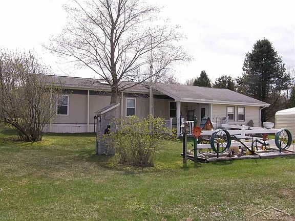 Affordable country living! Well maintained one owner manufactured home on a big 1.57 acre lot. Single wide with two family room additions gives you 1,000 square feet of living space. Nice kitchen with oak cabinets. Vinyl replacement windows. Natural gas. 18 x 36 carport plus three nice storage sheds. Includes all appliances. Central air. Low taxes - less than $700 a year!
