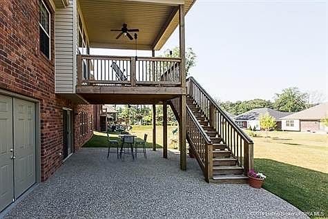 Amazing home with over 3000 SF of finished space and a walkout basement. This 4 bed 3 bath home built by Schuler Homes offers an open floor plan, hardwood floors throughout the foyer, living room and kitchen, a beautiful view of Floyds Knobs from your covered back deck and plenty of space to grow. Enjoy your outdoor living space from the patio below or the deck for a view of the whole neighborhood. You will feel right at home once you walk in the door. Square footage and room sizes are approximate.