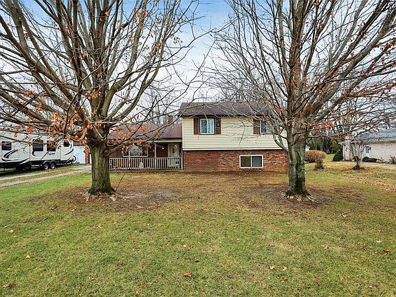 Welcome Home to this Knightstown Tri-level! Sitting on almost an acre, this 3 bedroom 1.5 bath home has plenty of room and an amazing backyard for new owners! Separate Living room and Family room areas provide two options for living spaces. An oversized and open concept kitchen/living room allows for entertaining and space. The basement is a blank canvas ready for ideas. Upstairs are 3 bedrooms and the full bathroom. The large covered front porch is perfect for hanging out. Out back enjoy the firepit and large yard.