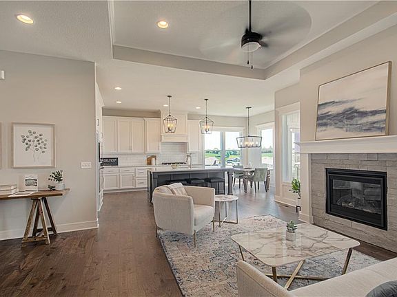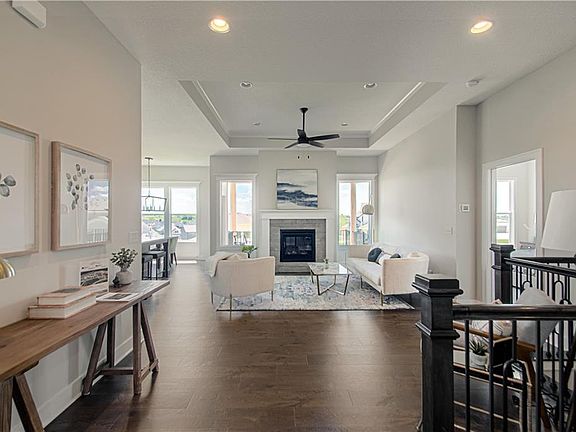 Welcome to the CARDINALE on a WALKOUT lot! An elegant Reverse 1.5 by Inspired Homes, this home displays a gorgeous tray ceiling foyer that greets you and flows into an open main floor with a formal dining room and spacious great room with designer trim, and accented with oversized custom windows, a beautiful fireplace and custom cabinetry. This homes chef’s kitchen showcases a butler’s & walk-in pantry connecting the kitchen to the dining room.  Popular “Rev Wood” flooring in great room and main traffic areas. Main floor master suite features a tray ceiling, custom windows & spa bath with dual vanities and custom storage towers. The main floor laundry is located off the master walk-in closet for ultimate convenience! The 2nd Bedroom on Main Level ideal is for office or guest room. A large covered deck and patio is waiting to take the party outside! Walkout lower-level w/9” ceilings feature rec/family room with full wet bar, bedroom suite with own full bath and walk-in closet, another bedroom, full bath and still plenty of space for storage! Fresh epoxy flooring in garage to finish off this stunning home. Home is now move-in ready! This is a walkout lot.