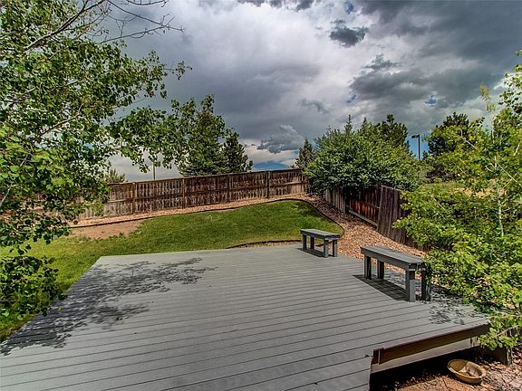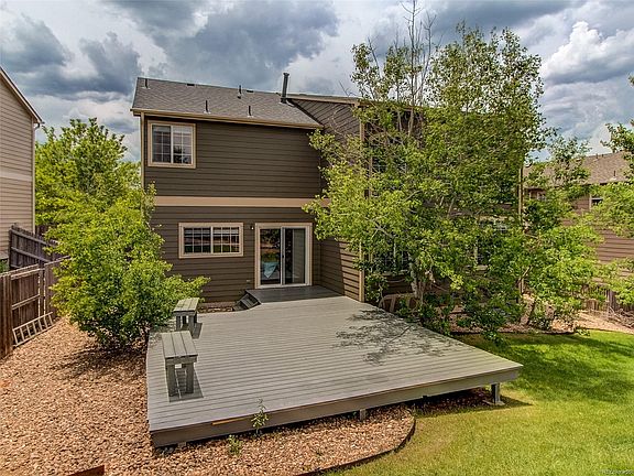 Beautifully updated Richmond 2-story (James-extended model) with FOUR bdrms upstairs with an over-sized and vaulted master bedroom. Wonderful natural light from home's SW exposure and many windows make the house spacious and flowing from room to room. Move-in ready, spotless, and with many updates such as: Nu furnace, nu carpet, nu paint inside and out, all nu window coverings, nu kitchen appliances-sink-backsplash, and more. Central air is only 6-years old. Oak floor entry with dining and living rooms either side; huge backyard Trek deck surrounded by aspen trees acting as wind chimes. Relax on the extra-large front porch watching sunsets over the Front Range mountains. Home features up to 9-foot ceilings, crawl-space storage in basement, irrigation system, southern exposure for snow melt, and a fenced backyard. RI plumbing in basement along with sump pump. Please, come enjoy!