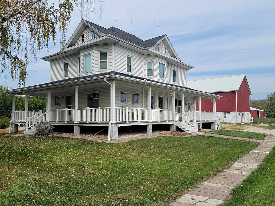 Country delight. Don't miss out on this decorated Victorian style, 2 story, 5 bedroom, 2 full bath home with hardwood floors and wrap around porch. Enjoy the outbuildings and 123 acres for your own personal hobbies, horses, beef, recreation/approx. 95 tillable acres, endless options.