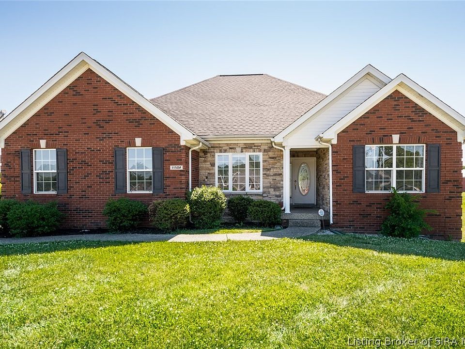 Wow! This ALL BRICK ranch sitting on a DOUBLE LOT in Silver Creek School system boasts a sprawling 1800 sq ft on the 1st floor and 3300+ total sq ft with wonderful open floor plan that is great for entertaining! HUGE kitchen with plenty of cabs, counter space and breakfast bar overlooks into the dining area and vaulted living room. The formal dining room\office area is right off the kitchen as well! This a split bedroom floorplan with a grand master suite, featuring a big walk in closet and master bath w/ a tub, double vanity, and stand up shower! The finished WALKOUT BASEMENT is huge and adds another 1500+ sq ft of living space including a 4th bedroom with an egress window and another possible 5th bedroom (no egress). Other updates include a NEW ROOF (2019), NEW HVAC (2020), and NEW appliances (less than 1 year). Home is eligible for 0% down USDA financing to qualified buyers. Close commute to grocery, expressway, and approx 8-9 minutes to Charlestown road amenities. Call Today for your private showing!