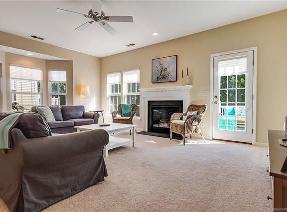 Welcome home to 11503 Destin Lane #116 in Charlotte. This move-in ready, end unit condo offers two bedrooms, two full and two half baths, with almost 2,000 square feet of light and bright living space. Some of the highlights include a NEW roof, NEW dishwasher, upgraded kitchen cabinets, and an amazing location minutes from Stonecrest, Blakeney, and Ballantyne, with easy access to I-485. This beautiful brick front home with lovely landscaping greets you as you approach. Enter the home and notice the foyer's gleaming wood floors. The light and bright great room features a fabulous bay window, ceiling fan, recessed lighting, cozy fireplace with decorative mantle, and a 15-lite door leading to the rear deck for entertaining. The living room is open to the dining room with delightful chandelier light fixture. The immaculate and fully equipped kitchen highlights tons of natural lighting, upgraded and abundant cabinetry, great counter space, island with bar seating, plus there is a convenient pass through to the dining area, making entertaining a breeze. Appliances include the side-by-side refrigerator with dispensers, smooth surface range, built-in microwave, disposal, and new dishwasher. There is also a half bath on this level, perfect for guests. On the entry level is a spacious flexible room that can be used as a home office or exercise room with refreshing lighted ceiling fan and two walls of large windows allowing natural light to fill the room. Also on this level are the second half bath and the laundry room. Upstairs is the dedicated bedroom level. The incredible master suite showcases a deep recessed tray ceiling with refreshing lighted ceiling fan, large windows, walk-in closet, and full private bath with double vanity and a garden tub with shower. The spacious second bedroom with lighted ceiling fan, and the second full bath are also on this level. Outside, relax with family and friends on the raised deck! Additional features include multi-zoned heating and air, an attached garage with opener and keyless entry, window treatments, and community pool. To receive info and pictures INSTANTLY to your mobile phone, text “DHG38” to 79564
