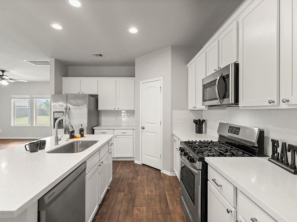 Stunningly Reimagined & Move-In Ready! This tastefully updated 4-bedroom, 2.5-bath home sits on one of the LARGEST LOTS in the neighborhood, an expansive corner cul-de-sac lot w/fenced yard - room for a POOL! Inside, enjoy a flowing, flexible layout w/primary suite on the 1st floor + stylish 1/2 bath for guests. The beautifully renovated kitchen features brand-new quartz countertops, modern sink/faucet, freshly painted cabinetry w/upgraded hardware & premium stainless-steel appliances. Throughout the home, you’ll find new designer lighting, updated sleek bathroom mirrors. A versatile front room w/ egress windows, French doors & spacious butler’s pantry offers endless options—use as a private office, formal dining, or 5th bedroom. Luxury vinyl plank, soaring ceilings & thoughtful touches create a sophisticated atmosphere. Enjoy a covered patio & access to 2 community pools, clubhouse & more! LOW tax rate & unbeatable location—minutes to I-45, & The Woodlands. Schedule your tour today!