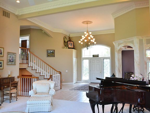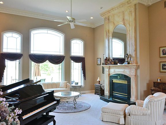 If you like built-ins and beautiful trim work, then this is the house for you. Hickory hardwood flooring throughout the expansive kitchen, breakfast nook and hearth room compliments custom cabinetry by Country Mill Cabinet Co. Three of the four fireplaces have entertainment centers or book cabinets adjacent. Lots of crown molding. Floor plan features great storage space, secondary basement stairway, generous laundry/pocket den area and craft and hearth rooms. FOUR CAR GARAGE IS OVERSIZED and has a walk-up stairway to the attic. Upgrades are too extensive to list all but include irrigation system, steam shower, central vac, Subzero refrigerator, Viking range and Thermador double oven. Grounds are beautifully landscaped, The back of this house looks down the length of the eighteenth fairway. Original owners have taken meticulous care of their property, inside and out.