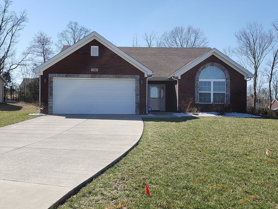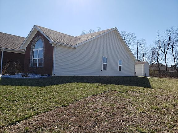 Beautiful single family home in the Creek View neighborhood. This home has a large open floor plan and has been updated with all new hardwood flooring and Kraftmade kitchen cabinets with quartz counter tops. The stainless steel appliances where added new with the kitchen update and will stay with the home. The back patio has been closed in with a vinyl sliding door and windows. The large master suite has lots of natural lighting from the two windows and leads into the master bath. Inside the master bath you will find a marble double sink, extra large shower with a bench seat, and a separate garden tub. The roomy 14 x 5 closet for the master suite is located in the master bath. The closet has been equipped with wire shelving and a built in shoe rack. The front bedroom has a large arch window and vaulted ceiling. The back yard has 42 x 12 concrete patio and a 16 x 12 shed with concrete floor. All landscaping was professionally done with concrete edging and white marble stone. This property has been very well maintained and is move in ready. For a showing or more information call or text (812) 989-9105