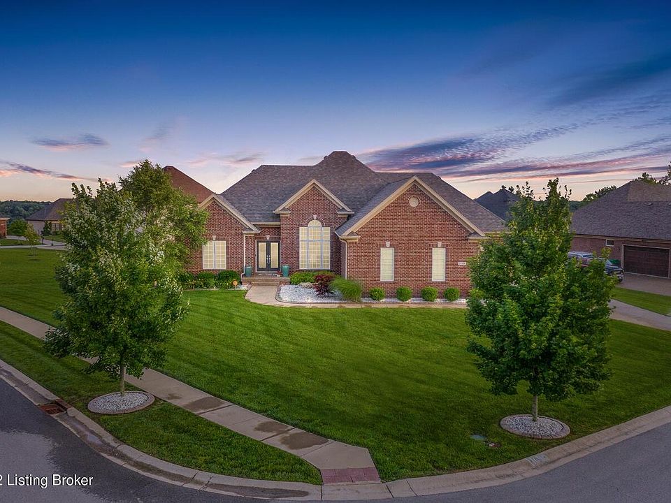 Welcome to 11504 Poolside Pl located in one of the most sought after neighborhoods in all of Louisville. This incredible 5 Bedroom, 4.5 Bath custom built home spans over 4,500 sq ft and the pride of ownership is on full display anywhere you are in the home. Open floor plan with gorgeous hardwood floors spanning the entire main level. Chefs kitchen with a huge island boasting granite countertops that gives way to the open space living room and dining area. Off the dining area is a screened in sitting room perfect for these summer nights. First floor primary bedroom with a huge closet and luxurious PBR. The main level offers a total of 3 bedrooms, 2 baths, formal dining room with custom crown molding, and laundry room. The basement has a humongous full bar with beautiful granite countertops and enough custom cabinetry to store anything you could ever need. The basement also offers an oversized den perfect for movie night or holiday get-togethers. There's plenty of space for everyone to be entertained. The lower level also features an additional primary sweet with a huge walk-in closet with a full bath. There's a 5th bedroom in the basement as well off of the den with a half bath and additional storage as well. The home has a built-in irrigation system that keeps the bright green grass nice and plush. The home is located on a corner lot, in private a cul-de-sac and just minutes away from the clubhouse and pool. This home has it all! Don't wait to schedule your showings!