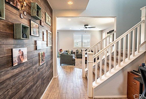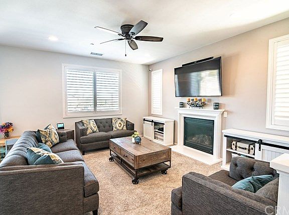 View, View, View! This gorgeous property has a premium lot with an amazing view of the city lights, surrounding mountain ranges, and of the prestigious Sycamore Creek community. Situated in the Serrano Ridge gated community, this 3 bedroom, 2.5 bath home features a gourmet kitchen with an island, walk-in pantry, loft, large upstairs laundry room, oversized 2-car garage, shutters, canned lighting & ceiling fans throughout and is loaded with so many upgrades! As you enter the home you'll notice a gorgeous wall feature, tile flooring and an inviting living room with plenty of natural light. The kitchen boasts all white cabinets, granite countertops, an island, beautiful backsplash, stainless steel built-in appliances, custom drop-down lighting and offers so much storage & counter space. At the top of the stairs you will find a loft with custom built-in cabinets and shelves. This space can serve as multi-uses such as an office or a play-room. Master bedroom features an oversized walk-in closet, master bath with his & hers sinks, soaking tub, separate shower and powder room. The 2 other bedrooms are a good size, share a guest bathroom with dual sinks and are located on the other side of the house. The backyard has an unobstructed view since there are no other houses built directly behind it. Enjoy the view from the pergola and jacuzzi while relaxing or entertaining. This property really sets itself apart from all of the others. Close to great schools, shops and the 15 fwy.