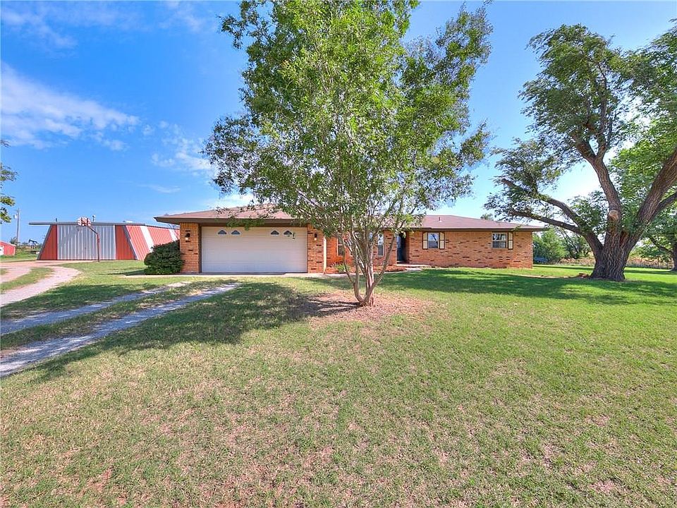 Enjoy the Scenic Views of this Lovely Country Home Located outside of Calumet, OK. The Ranch Styled Home features 1607 Square Feet of Living Space, 3 Bedrooms, 2 Baths, Tons of Storage including a Basement. The Home Offers An Open Concept Layout Giving it a Light and Bright Feel! Large Living Area that is Centered around a Cozy Wood Burning Fireplace. The Country Kitchen offers an eat in Dining Area, Stainless Steel Appliances, Ceramic Tile Flooring and a Nice Layout. Recently Painted Interior, Newly Installed Light Fixtures and New Carpet Installed! Home sits on 1.72 of an ACRE with a 30x30 WORKSHOP (Shop has Electric), with a Circle Drive, Large Patio Area and Mature trees! Come live the Dream in this Home! *Property also qualifies for ZERO Down USDA Financing.*