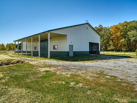 PRIME LOCATION! This LARGE ranch is just 3 miles from the IL border! You'll fall in love with the 4 acre corner lot and the 80 x 60 Morton pole barn complete with NEWLY POURED CONCRETE FLOORS (already set up for geothermal heating). This barn includes a 15' automatic door, two manual sliding doors, and 12 x 60' lean-to. There's also a detached 4 car heated garage. The home has many updates including windows, and a NEW ROOF in 2016. On the main level you'll find two living rooms (one with a wood burning FP), finished laundry room, master bedroom with a deep walk-in closet and an office space, full bathroom with a glass shower & jacuzzi, bedroom #2, and the easy flow kitchen complete with beautiful appliances and access to the covered deck. Head downstairs to the MASSIVE REC ROOM with 10 foot ceilings, bedroom #3, a 2nd kitchen, 3/4 bathroom, and a large office/den (no windows) with 3 closets! The basement has radiant heated floors. It is impossible to run out of space in this house!