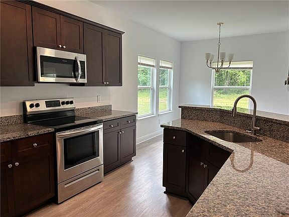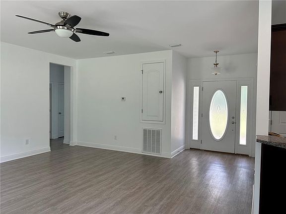Like new. Barely been lived in. 2/3 with open concept. Tastefully decorated. Granite in kitchen and in both bathrooms. Built in microwave, convenient utility room off kitchen and side of driveway. Pantry plus lots of beautiful cabinets with soft close. 9 foot smooth ceilings throughout with tray ceiling in master bedroom. Master has 2 square sinks and 2 walk-in closets plus a linen closet. 2nd linen closet is in the hallway. Canned lighting, hide-a-way blinds in the exterior doors, blinds on all windows. Covered back porch, extended patio facing the woods. Just minutes to local churches, schools, and shopping. 5 minutes to I-65, 20 minutes to Bel Air Mall. Convenient to North Mobile plants and Hwy 43. Quiet and peaceful.