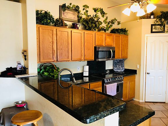 Wonderful 4 bedroom, 2 bathroom, 1432 square foot home with solar panels in the Stratford Estates community of Mesa! This home boasts incredible curb appeal with brick accents. The open floorplan guides you to the kitchen with breakfast bar, stainless steel appliances, granite counters and room for dining. The master bedroom includes a full bathroom and walk-in closet. The huge backyard features a covered patio, an RV gate, lots of space, and a sparkling pool, complete with diving board and slide. Schedule a tour of this home before it's sold!
