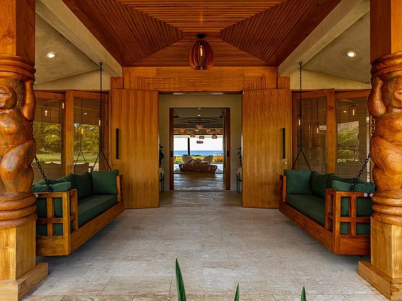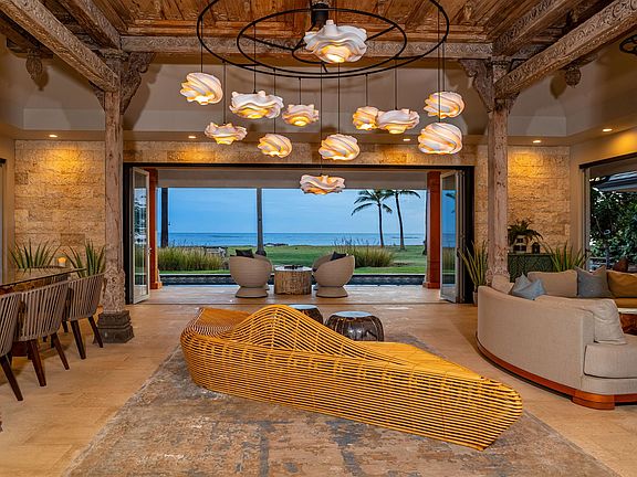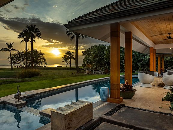 MAGICAL MAUI is a "One Of A Kind" Olowalu Beachfront Masterpiece with the ultimate attention to detail. Single level 4b/4.5b contemporary smart-ready fully furnished and well appointed residence completed in 2020 features world class architecture and interior design representing "a residential work of art and love." The seamless indoor/outdoor living best defines the "Maui Tropical Lifestyle" the spacious open floor plan with interior central and split A/C. You will love the artistry throughout the property, from the hand made automatic entry gate, the soft light lined drive, the pivoted entry doors, the etched acid washed marble flooring, the impressive plaster walls, the open air corridors with water features lead to all rooms, the hand carved banana tree wall reliefs, the amazing translucent cloud chandelier made of zippers, the antique obis, the book matched marble back splashes, the glazed lava stone kitchen counters, the soft close cabinetry, the jacquard silk and fine glass wall treatments, the marble and granite primary bathroom suite and two very special outside showers. The covered lanai is perfect with the outside bar area and is steps to the pool, spa and crystal blue Pacific Ocean.