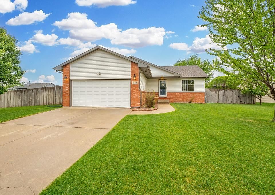 Welcome home! This desirable home in the Goddard School District is a rare find. This well taken care of ranch style home has had some great updates in the last few years. Some updates include a new GAF Timberline roof in 2019, a new hot water heater in 2018, new ac and furnace in 2019, master bathroom update in 2018, radon system installed in 2020, a lot of fresh paint, all LED lighting on interior and exterior, and more. The main floor offers a spacious living room that opens to dining and kitchen. The beautiful stainless-steel appliances all remain! You will notice the beautiful cabinetry finish, easy access from sliding glass door to the fenced backyard with patio, and nice, neutral carpet throughout. There are two bedrooms, two full bathrooms, and main floor laundry as well. The master suite offers a walk-in closet, an updated bathroom with two sinks, under cabinet lighting, and a shower. The second bedroom is very spacious and has easy access to the hall bathroom with tile flooring. Head to the basement to find a very large rec room, dry bar, a third bedroom, and third full bathroom. Lots of space to spread out and enjoy in this basement. The home has newer light fixtures, Levolor window treatments, and a great backyard. The fenced-in, corner lot has a storage shed, a well-maintained lawn, sprinkler system, and an irrigation well. Easy access to Kellogg and many amenities! Specials are paid out (other than the yearly $7.90 landfill fee). You don't want to miss out on this home!