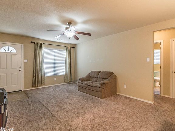 This 3 bd, 2ba has it all. Carpet Living & bedrooms, 4x4 Patio, Black Kitchen Appliances, Chrome Plumbing Hardware. Ceiling Fans in Master / Living. Master bath has large walk in closet , separate shower and jetted tub.