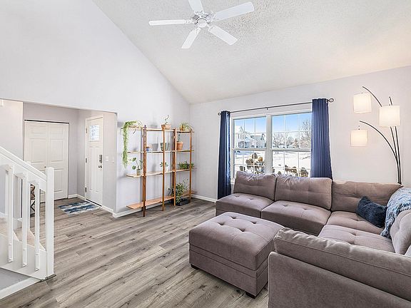 Welcome home! This well maintained 2-story home features 3 beds, 2.5 baths. The entire house has fresh paint throughout, updated light fixtures, and newer LVP flooring on the main floor and all bathrooms. The spacious layout includes a lofted floor plan and vaulted ceilings. Don't miss the eat-in kitchen offering a corner pantry and open concept flow to the living room. The generously sized master bedroom, complete with a walk-in closet and a newer closet organizer system, provides both style and functionality. Step outside to the expanded patio, surrounded by professionally updated landscaping, offering a perfect retreat for relaxation or entertaining guests. The upgrades extend beyond aesthetics – a new furnace, air conditioning unit, water heater, air purifier, and a whole-home humidifier were all installed in September of '23, ensuring comfort and efficiency year-round. Come check it out today!
