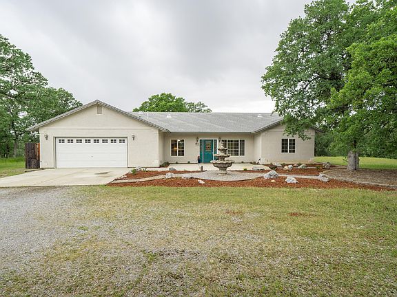 Welcome to this 3 bedroom, 2 bathroom home on 3.27 acres in northeast Redding. This unique, custom built home offers both space and privacy while being located in the middle of a neighborhood (not in fire zone). The water fountain and covered back patio add a touch of relaxation and outdoor enjoyment, while the greenbelt provides beautiful views and a serene atmosphere. The interior features granite slab countertops in both the kitchen and bathrooms, a jetted tub and walk-in shower in the primary suite, and a split floorplan. Additionally, this property features both a 2-car and 1-car attached garage for ample parking and storage space. Don't let this one get away!