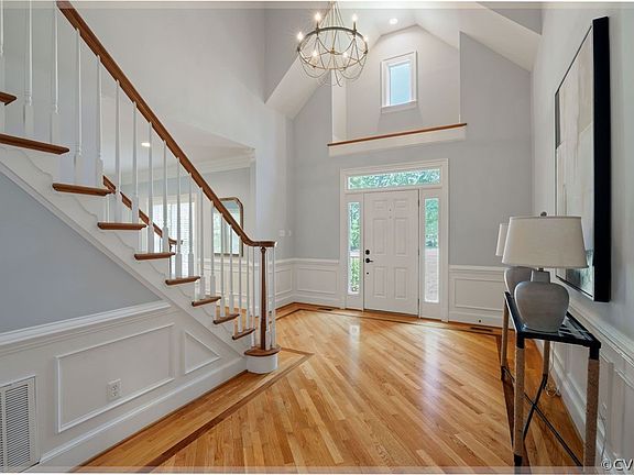 Welcome to this stately brick home sitting proudly in Short Pump's desirable Barrington neighborhood. Don't miss the video tour of the property. Cathedral ceilings invite visitors inside the well laid out floor plan with elegant crown molding, wainscoting and hardwood floors. Generous living spaces are ideal for family gatherings in the formal living and dining rooms as well as the grand family room with two story floor-to-ceiling windows ushering in natural light. The noteworthy kitchen renovation is sure to dazzle with a massive central island of New York Quartzite, custom cabinetry, high end stainless appliances, walk in pantry and an extended wet bar running alongside the bright breakfast room. A bedroom and full bath on the ground level serve as an ideal in-law/guest suite or home office. The luxurious primary suite with fireplace and magazine worthy bathroom renovation showcases custom vanities, free standing tub, waterfall tiled shower and walk in closet. Three additional bedrooms, play space and two more full baths enjoy fresh carpet throughout the second story. The third floor offers a freshly carpeted recreation space, au pair's suite and full bathroom. One laundry room per floor, mud room with custom cubbies, as well as an oversized two car garage is sure to keep everyone organized. Step through the French doors onto the new two-tiered Trex deck (2021) providing over 700 sqft of outdoor living space overlooking the mature landscaping. The 50-year Grand Manor slate roof, all three HVACs and water heater were installed in 2017. The location offers easy access to shopping, Short Pump schools, the areas best dining as well as highway access (64, 295, 288) for a quick commute to all points in the City.