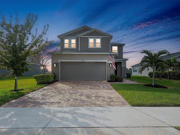 North River Ranch-- Brightwood-- 3 bedroom, 2 1/2 baths 2 car garage-- home has a dedicated office and a loft so there is plenty of space for a family to spread out! Another nice feature is the screened lanai that you push a button and the screens retract. Also the nice size back yard that is on a pond is fenced in so bring your pets and kids--. This home is located within one of the few areas zoned for the all new Harvey Middle School. Located in desirable Parrish, Fl-- you will be just a short drive to shopping, popular restaurants, and beaches. Publix is a short golf cart ride away-- so very easy to go food shopping!! Home is very well maintained and move in ready!!