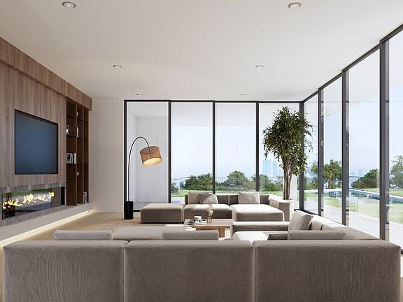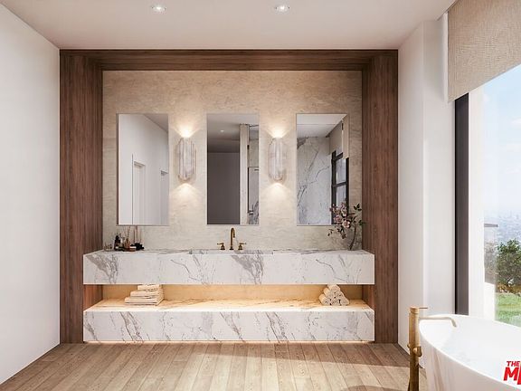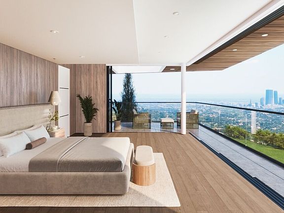 Perched at the end of a private cul-de-sac in Bel-Air, this newly reimagined Architectural estate spans approximately 10,000 square feet and showcases sweeping 270-degree views encompassing the Bel-Air Country Club, Pacific Ocean, Catalina Island, Century City, and Griffith Observatory. Behind its own secure gates, the residence offers a rare combination of modern luxury and total privacy. Dramatic ceilings and walls of glass flood the main level with natural light, revealing a grand great room, formal dining area with fireplace, state-of-the-art theater, and a sophisticated bar with a walk-in wine cellar. The gourmet chef's kitchen features dual islands with waterfall countertops, top-of-the-line appliances, and a separate prep kitchen. Fleetwood automated pocket doors blur the line between indoors and out, opening to expansive terraces with unobstructed panoramic vistas. Upstairs, the ultra-private primary suite serves as a true retreat with its own sitting room, wet bar, and dual bathrooms with sweeping views. Three additional en-suite bedrooms and a secondary family room complete the level. The meticulously landscaped grounds feature mature hedges for privacy, an infinity-edge cantilevered pool, spa, outdoor bar and BBQ, and a generous lawn, all oriented toward the captivating skyline and ocean views. A statement of design and scale, this Bel-Air estate epitomizes the ultimate entertainer's dream. **The photos provided are architectural renderings. They are for representation purposes only and may not reflect the final appearance, materials, or specifications of the completed home.