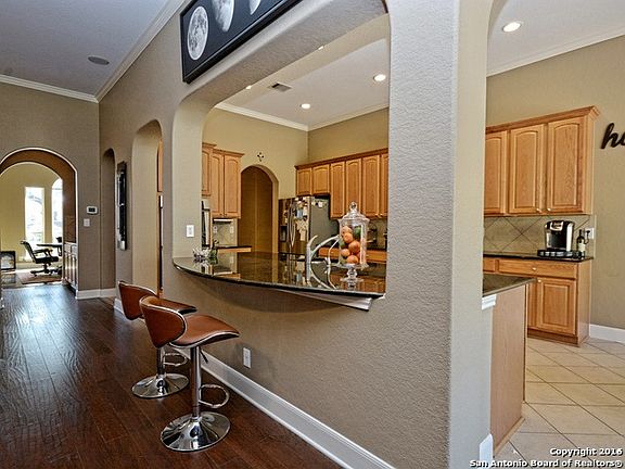Gorgeous single story home sits on corner oak studded lot on 0.79 acres. This spacious 4/3.5/3 side entry garage. Open floor plan generous rooms. Stained concrete floors, wood & tile. Freshly painted majority of interior with nuetral color. Granite in the kitchen, 42' raised panel cabinetry, built in appliances with double ovens, out door entertaining with covered gazebo boast fireplace with kitchen. Photos do not do this home justice! Easy to show!