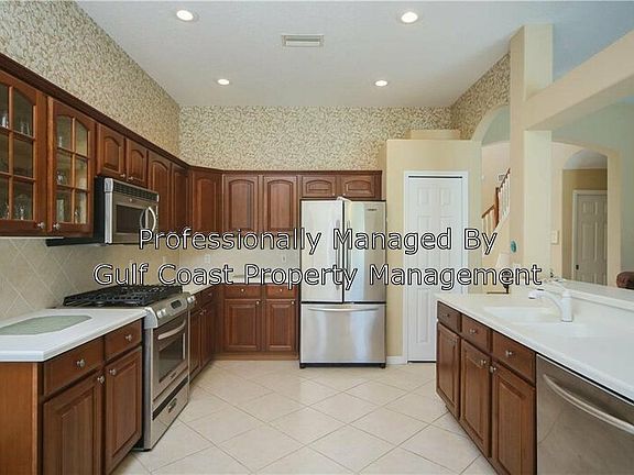 Furnished rental located in the Riverwalk Grove community in Lakewood Ranch. Experience the Lakewood Ranch lifestyle in this three-bedroom home that showcases a sparkling heated pool with a lake view. Corian countertops and stainless steel appliances in the kitchen plus formal dining area to entertain guests, the split floor plan boasts a private master suite with garden tub, roman shower and dual vanities. Also a private sitting room/guest room. Upstairs, the 2nd story has 2 full bedrooms, guest bathroom and an office area. First and security deposit and approved background check required to move in. Six month lease required.