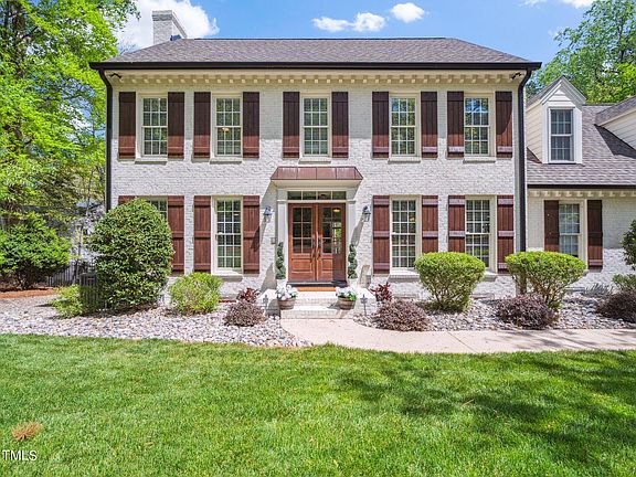 Double doors welcome you into this North Raleigh traditional showstopper. You'll be hard pressed to find a better maintained home. Luxurious features, such as one of a kind hand scraped acacia hardwood flooring throughout the home, reclaimed wood, stone front fireplace w/ hand hewn mantle, Gorgeous trim in every room, built-ins, shiplap, glue chip privacy shower, heated tile flooring, skylights & more. Gourmet kitchen with stainless steel appliances, quartz countertops, gas range, butler & built-in pantries & a massive island ready to entertain all your guests. Who needs to go on vacation when you have paradise in your own backyard? Paver patio has built-in fire pit to enjoy cooler nights. Lower patio includes a cabana for shade escape, 40' in-ground heated and cooled saltwater gunite pool surrounded by palm trees & an outdoor bathroom. Detached garage with tall ceiling height to accommodate a car lift. Room above is an additional 525 sf of heated & cooled recreational space. Newer roof and HVAC systems. Nothing but the best care including semi-annual HVAC service, semi-annual crawl space inspections, quarterly pest control, annual power washing, weekly professional pool servicing, etc. Homes like this do not come up very often!