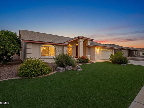 Updated home with golf course view without the price or flying golf balls! Recently replaced roof, A/C AND water heater, owned water softener & R/O system AND refrigerator, washer & dryer complete home's package*This turn key home is nestled in a serene & well-maintained community that welcomes you w/a balance of lifestyle & comfort*Open concept is ideal for entertaining, with formal & living spaces inviting conversation with the kitchen conveniently centered*Stylish kitchen appointments include white cabinets, quartz counters, single basin undermount sink, lots of counter space, storage and high top bar for optional seating*Split bedroom and bathroom invites guests or ideal roommate situation*Hard surface flooring throughout with no interior steps*Generous laundry room offers space for small desk or additional refrigerator and is tucked off hallway leading to oversized two-car garage*This N/S exposed, desirable interior homesite has it all*Designed for engaged, active residents, this 55+ home and community provide a modern, low-maintenance lifestyle without compromising style or comfort*Sunland Springs Village is a launchpad for your next chapter, surrounded by vibrant neighbors that may soon be friends*Bring your personal effects and see what the community has to offer; including a public 27 hole golf course, dog park, pools, spa, library, card/table games, ceramics, wood shop, fitness center, art & stained glass center, basketball, bocce ball, pickleball, tennis and shuffleboard courts*Conveniently located approximately 15 minutes to Mesa Gateway Airport AND about 40 minutes to Sky Harbor International Airport, freeway system, medical facilities, shopping, museums, theaters and restaurants provide very close options for optimal living!