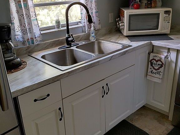 There is a laundry area in the front. The larger portion of the room could be used as a family room, guest bedroom, etc. The kitchen was remodeled in the Spring of 2021. New appliances, cabinets, counter tops, deep well stainless steel sink & a fresh coat of paint. The master bedroom has a full bath & walk-in