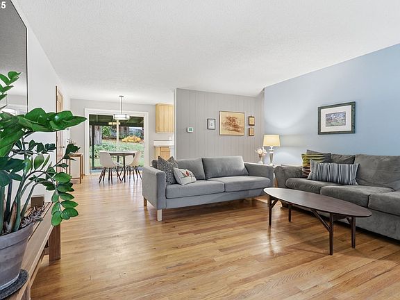 Charming one-level ranch-style home featuring hardwood floors throughout and a bright front living room with a wall of windows that fill the space with natural light. The open layout flows seamlessly into the spacious kitchen and dining area, perfect for everyday living and entertaining. Additional features include vinyl windows, air conditioning, a newer roof, and a finished two-car garage. Enjoy the large, fully fenced backyard with a covered patio, sitting area, and storage shed—ideal for relaxing or gardening. Conveniently located near Homewood Park, the Campbell Community Garden, public transit, and major highways, this home offers both comfort and accessibility in a desirable close-in location. View the video walkthrough: https://tinyurl.com/3f8na2v9 [Home Energy Score = 6. HES Report at https://rpt.greenbuildingregistry.com/hes/OR10242724]