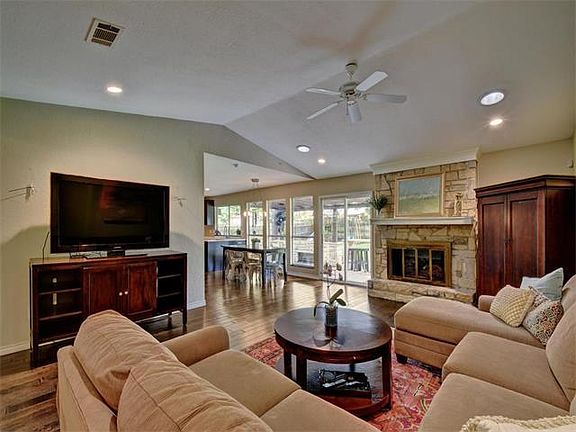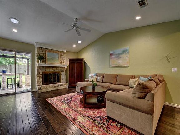 Wonderful single-story ranch in Barrington Oaks. Gorgeous remodeled kitchen with double ovens, cooktop, quartz counters and stacked stone backsplash. Engineered hardwood floors; updated bathrooms; spacious, flat back yard with covered patio and custom stone work. Master suite with attached sunroom/office/library. Recent roof, electrical service, windows, tankless water heater, HVAC, interior & exterior paint. Feeds to exemplary schools (Kathy Caraway, Canyon Vista & Westwood).