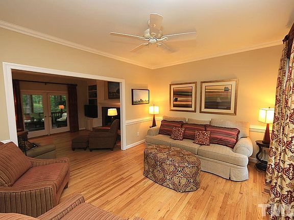 Price Reduced! 1 of Triangle's finest back yards! Loads of private space w/ hardwoods, fire pit, waterfall, tree house, pergola, patio, deck, screened porch, outdoor lighting & a must see at at night! Your own park w/ zoysia lawn AND cul de sac! Com. pool, tennis, play. $50,000 in updates! 4 Bdrms + Large Bonus rm. Open floor plan perfectly renovated for entertaining. Kitchen updated w/ new island, SS appliances, granite counters & new hardwoods '16. Most all new paint '17, new carpet '18. Move in Ready!