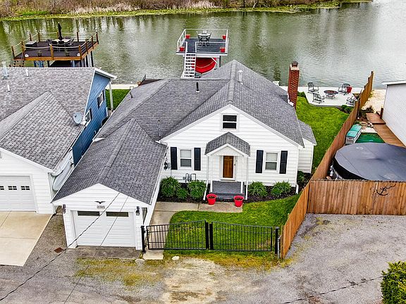 HUGE PRICE REDUCTION!! Desirable water front home utilizing every space for living. Just bring your clothes - food and enjoy! 4 bedrooms sleeps 6, replace twin beds in small bedrooms with bunk beds and sleep 8. 2 Baths-main bath is updated with tub/shower surround, second bath is shower only which could be replaced with stackable washer/dryer. Home is fully furnished w/newer windows, living room has large picture window overlooking water and has wood-burning fireplace with attractive stone front. Kitchen is fully equipped with range, refrigerator, new dishwasher and microwave. Cute bar room with French doors which opens for summer use and leads onto large deck, newer 2 story boat house/dock with upper deck over-looking water and newer seawall. Another deck with fire pit is also located in the back yard, small storage area located on side of home perfect for additional storage. One car garage w/opener. Additional parking is available at the public parking lot just steps from this home. Shower in small bath could be converted for stackable washer/dryer. Fireplace has not been used and is not warranted. New well July 22. Easy to show - call for your appointment today.