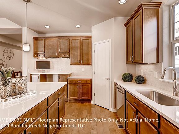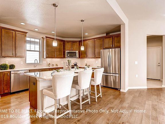 This Low Maintenance Entice Floorplan by Boulder Creek Neighborhoods features an entertainers kitchen that highlights the open floor plan. Experience "urban nature" in Bluff Lake, built around neighborhood parks and greenery on one of the last corner lots. You'll love the Master Bedroom and Laundry on the main floor as well as the front facing Study. The finished basement features an expanded rec room with 9 foot ceilings. On top of all of this-there is an Oversized 2 car garage. Outdoor living includes the covered back patio that is connected to the great room and a covered front porch with Southern exposure. This home includes granite counters and hardwood floors... and you can still personalize the cabinets, fixtures, and more. Free time is waiting for you in this Entice home. Move In July 2019. Photos of Model.